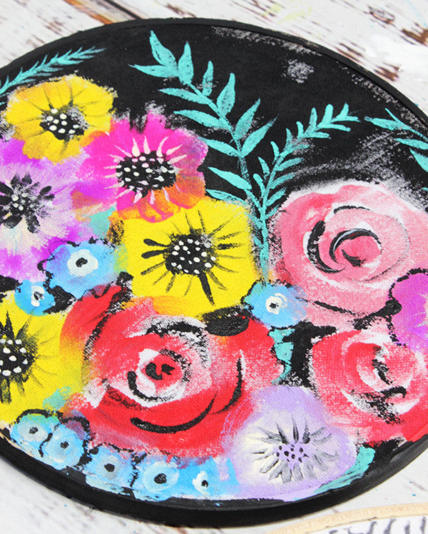 Who says that art needs to fit inside a square?! I will share a variety of creative techniques and concepts that can be used to transform an embroidery hoop into a unique round piece of art!