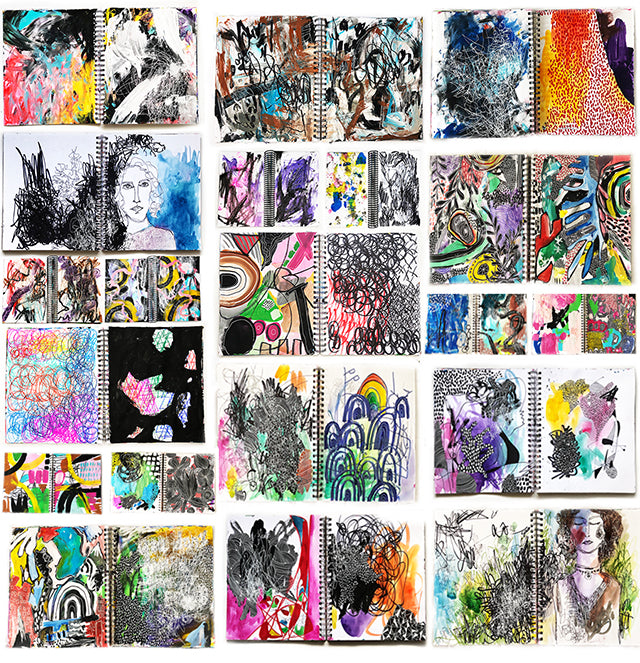 I teach a lot of classes on how to make art but what I haven't shared is one of the most profound and important ways that I USE art and the creative process. I've discovered after a lifetime of creativity- that sometimes you don't have words or images or even the time to create your next masterpiece. Honestly, sometimes you've got so much going on in your life, your head and your heart that you don't feel like making "something" beautiful. It is in these moments that I let all of that go and I use the creative process to express myself, get my feelings out, work through my emotions and document my experiences and memories.