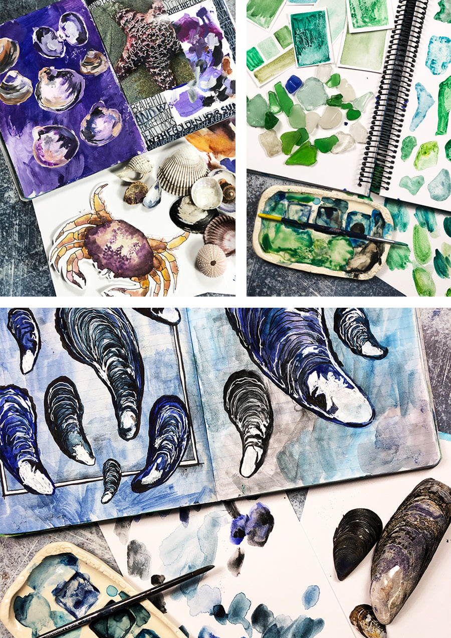 I am sharing 30 creative techniques, prompts and exercises to get you playing around with inspiration pulled from my favorite beaches.