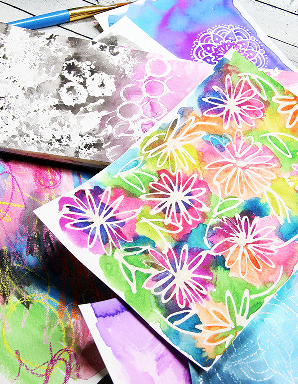 In this class we are going to dive into all kinds resist techniques! From a wax resist to using vaseline, soap, glue, paint, masking fluid and more I will be sharing some really creative ways to use everyday materials to create resists on a paper, canvas and fabric.