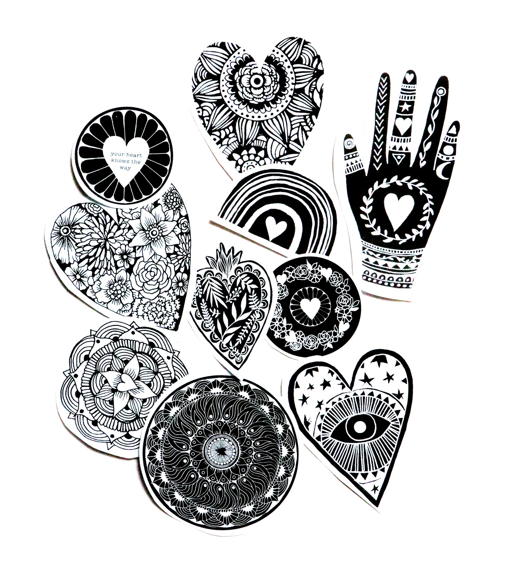 A pack of 10 paper stickers made for you to use in your mixed media projects and art journal pages. Paint, color and get creative with these stickers.