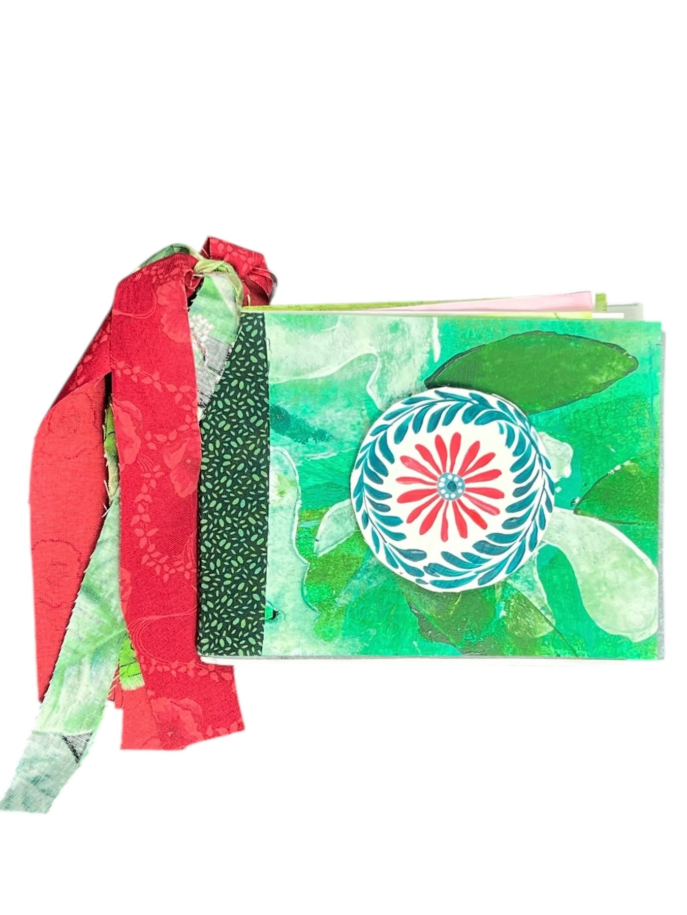 5 x 7" handmade journal (12-15 pages of unique bits and pieces of paper) ready for layers of creativity. These fun little 5x7" junk journals are handmade with bits and scraps of paper, making each one a unique!