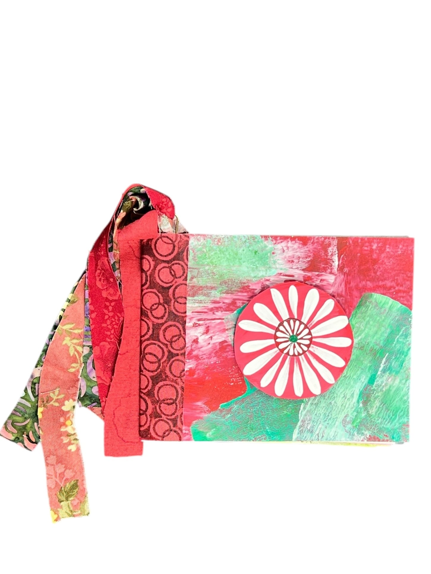 5 x 7" handmade journal (12-15 pages of unique bits and pieces of paper) ready for layers of creativity. These fun little 5x7" junk journals are handmade with bits and scraps of paper, making each one a unique!