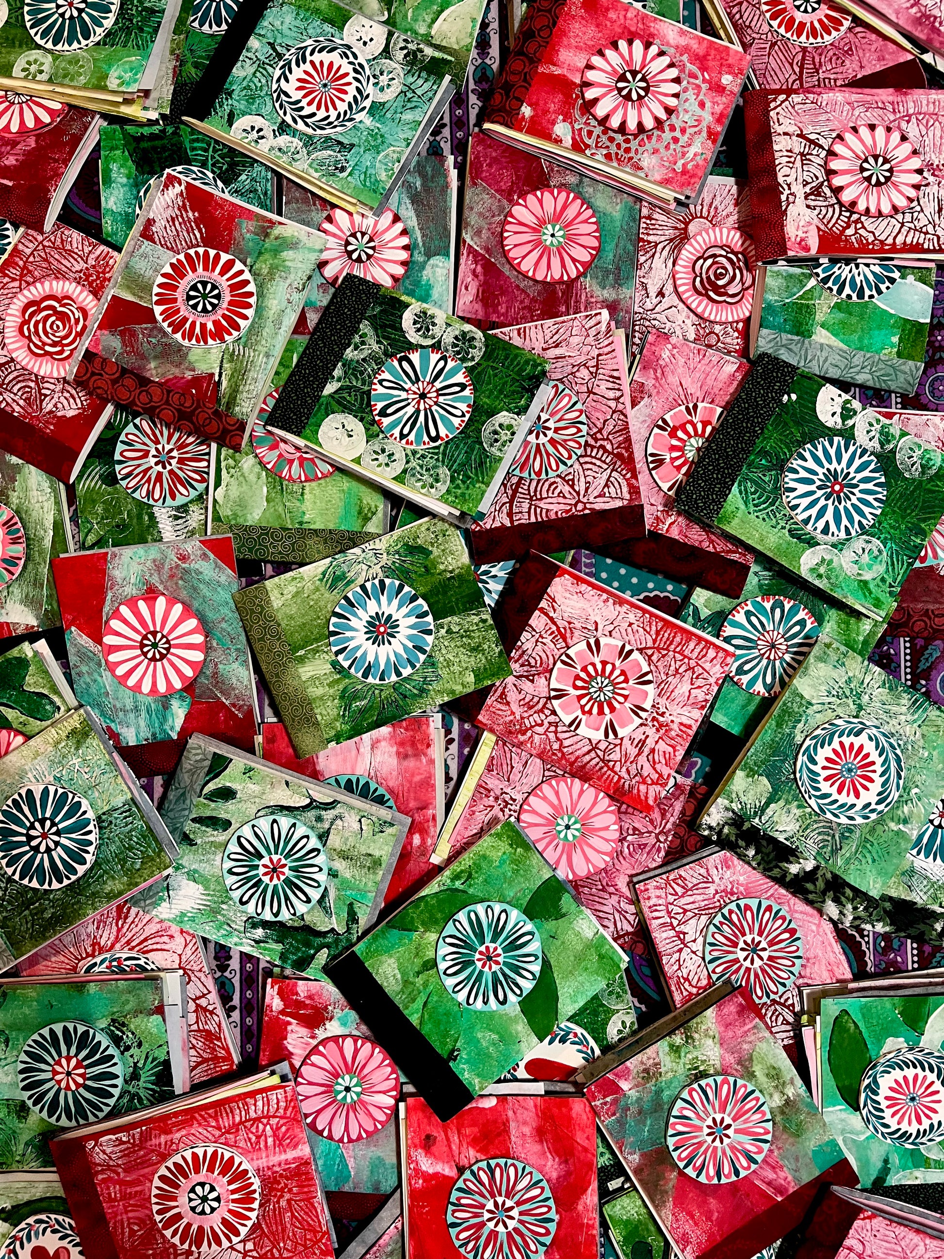 5 x 7" handmade journal (12-15 pages of unique bits and pieces of paper) ready for layers of creativity. These fun little 5x7" junk journals are handmade with bits and scraps of paper, making each one a unique!