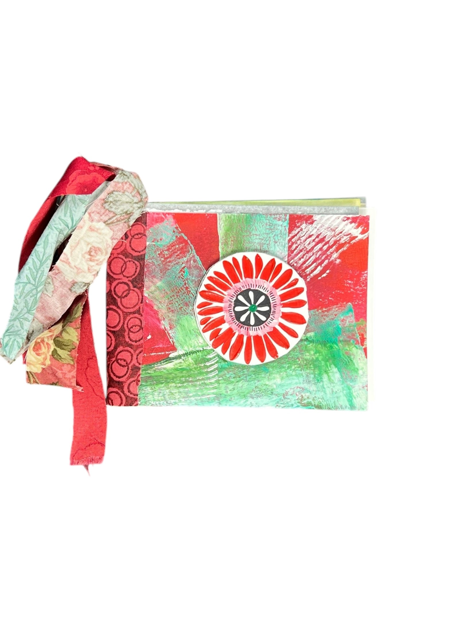 5 x 7" handmade journal (12-15 pages of unique bits and pieces of paper) ready for layers of creativity. These fun little 5x7" junk journals are handmade with bits and scraps of paper, making each one a unique!