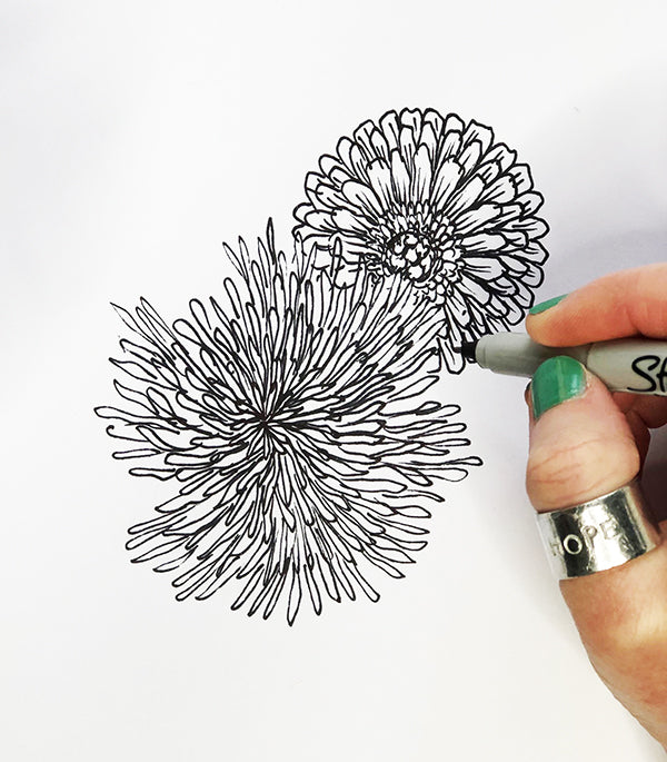 I think it is pretty obvious that I pull a lot of inspiration for my art from flowers! In this teeny tiny class I will be using one bouquet and interpreting it in three different ways! I will be using drawing, watercolors and mixed media layers to share how I like to push that floral inspiration in a variety of different ways.