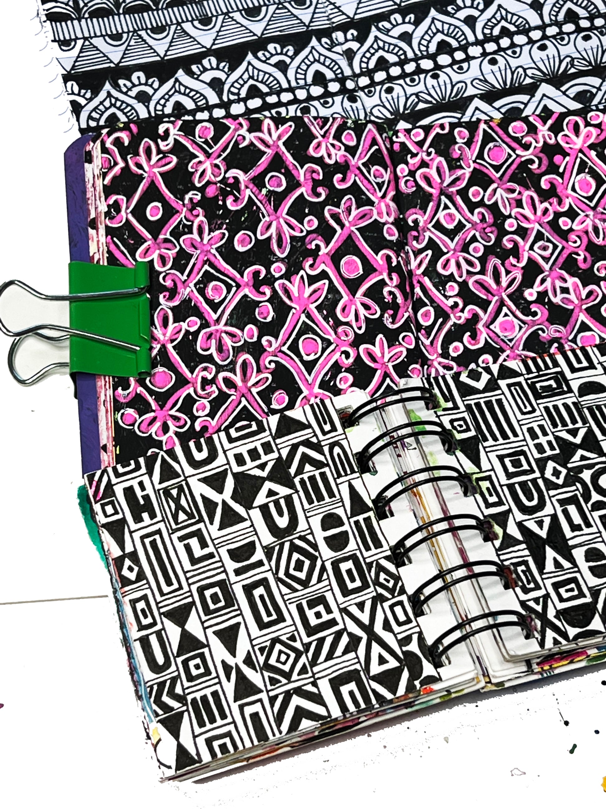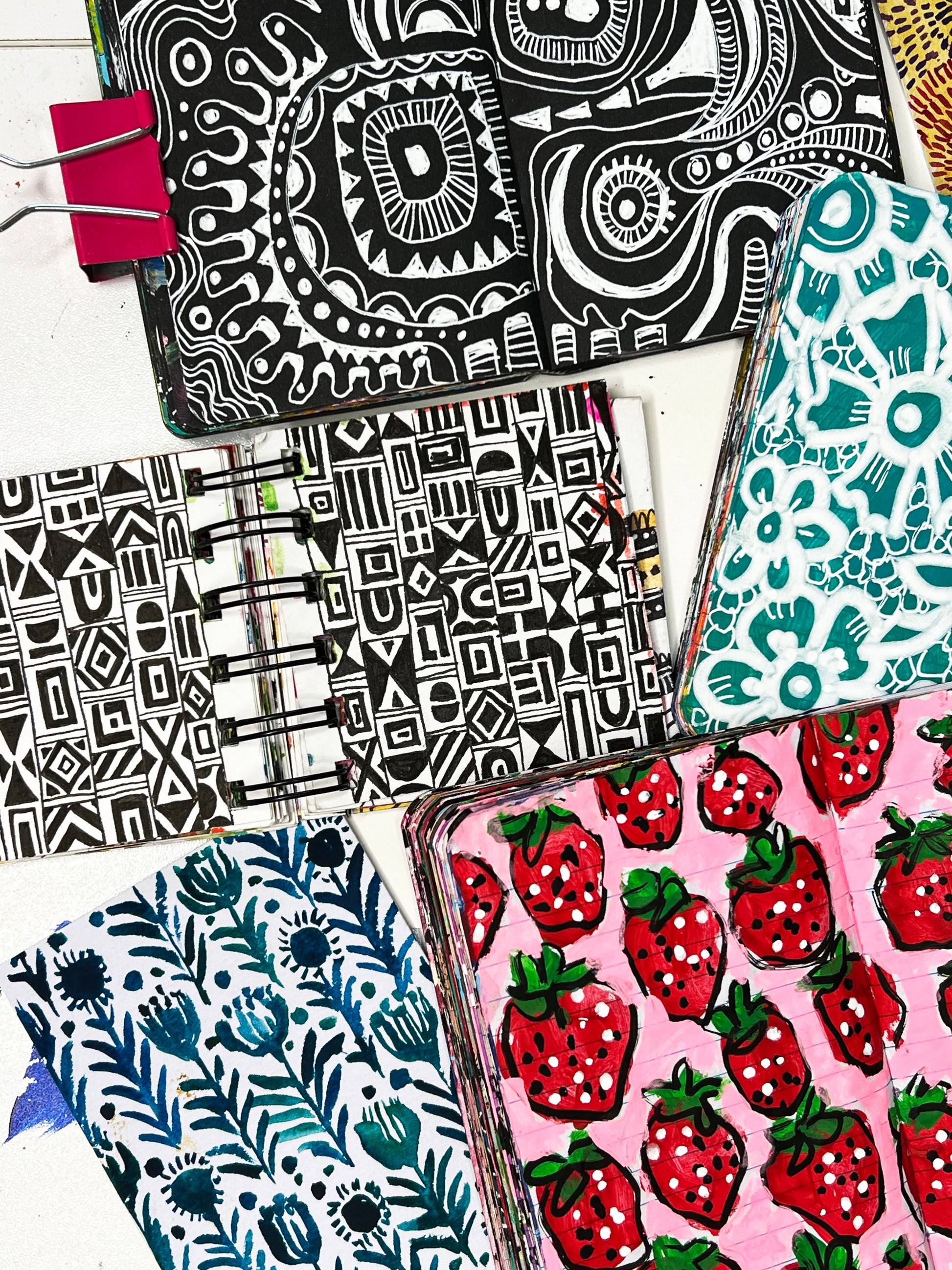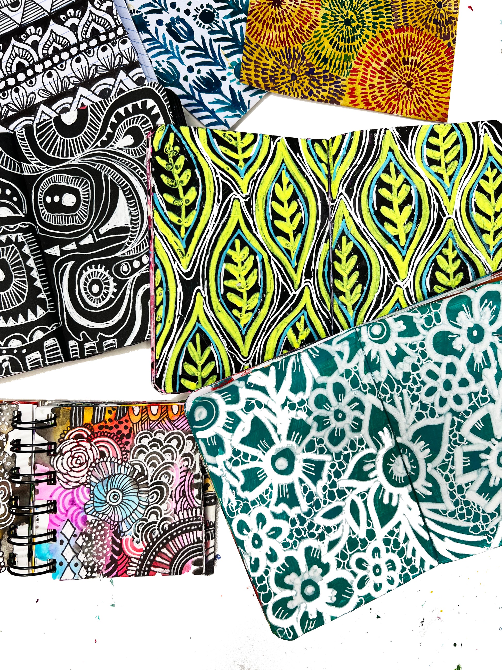 While I love to work on large surfaces, I've learned that creating small gives me the opportunity to finish a surface, a technique or an idea in a short amount of time. I also love doodling! Doodling is relaxing, stress free, silly and super creative. It is also a really simple and practical way to carve out a daily art practice. The best part is that anyone, any age and any level can do it!