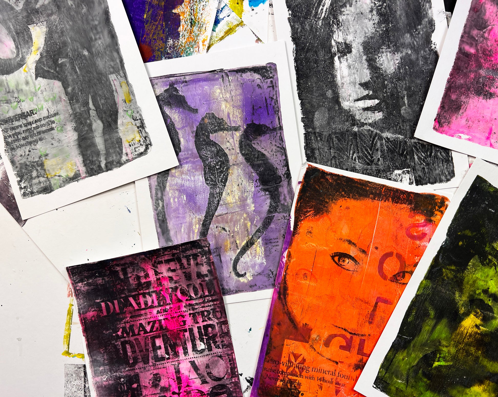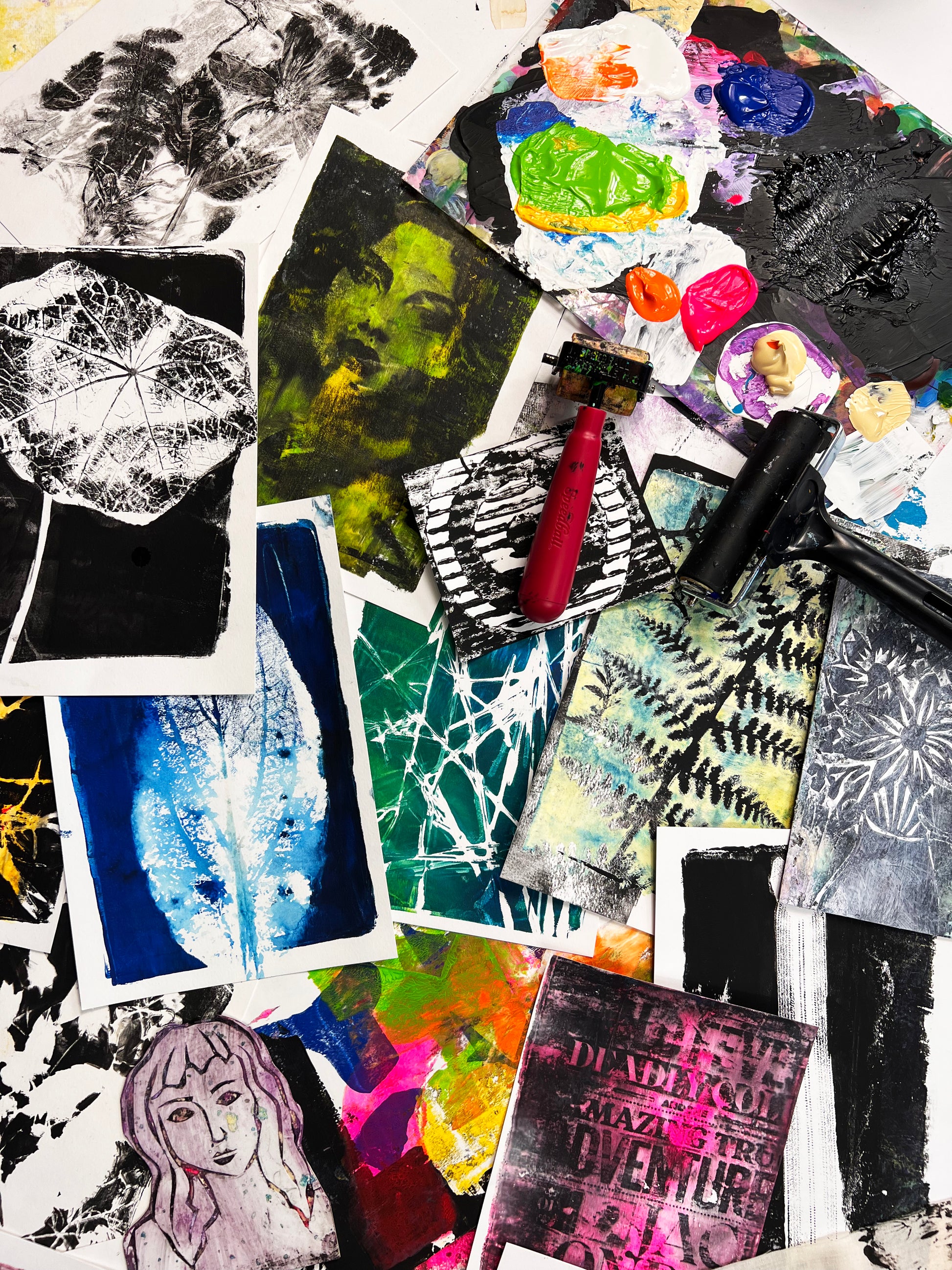 In this 30 day class I will share some of my favorite printmaking techniques, tools and how to work with unconventional and every day supplies. From monotypes to collagrahy to lino printing, lithography, Gelli Plate printing and more! I will be sharing 30 days ofย fun prompts, techniques and inspiration to incorporate all kinds of printmaking techniques into your creative process.