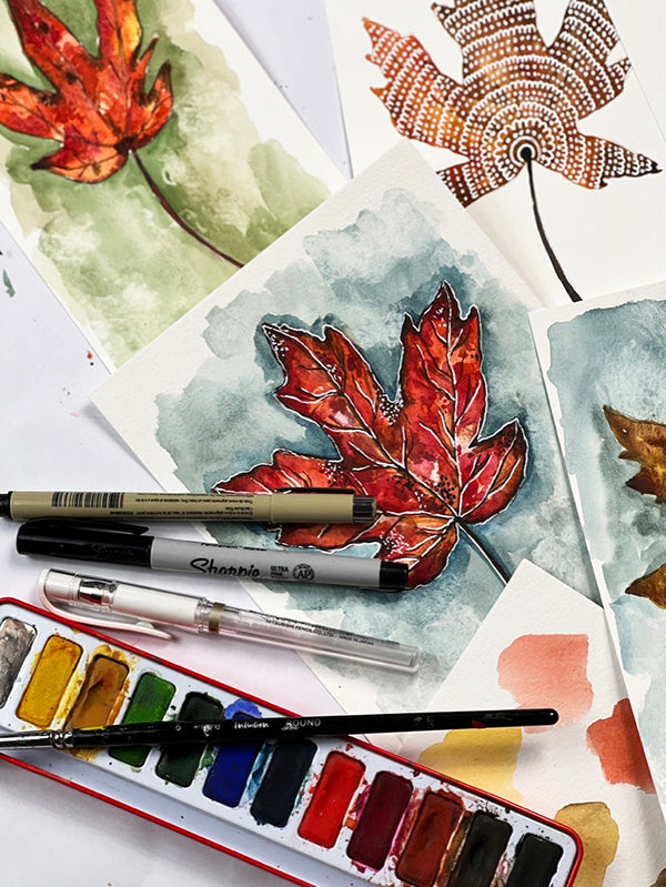 This is a fun little class with 5 lessons where we explore my favorite tips and trick for creating fall inspired watercolor leaves.