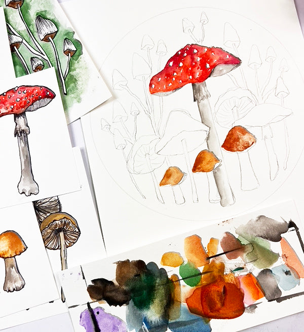 A fun little class with 5 lessons where we explore sketching and watercolor mushrooms.