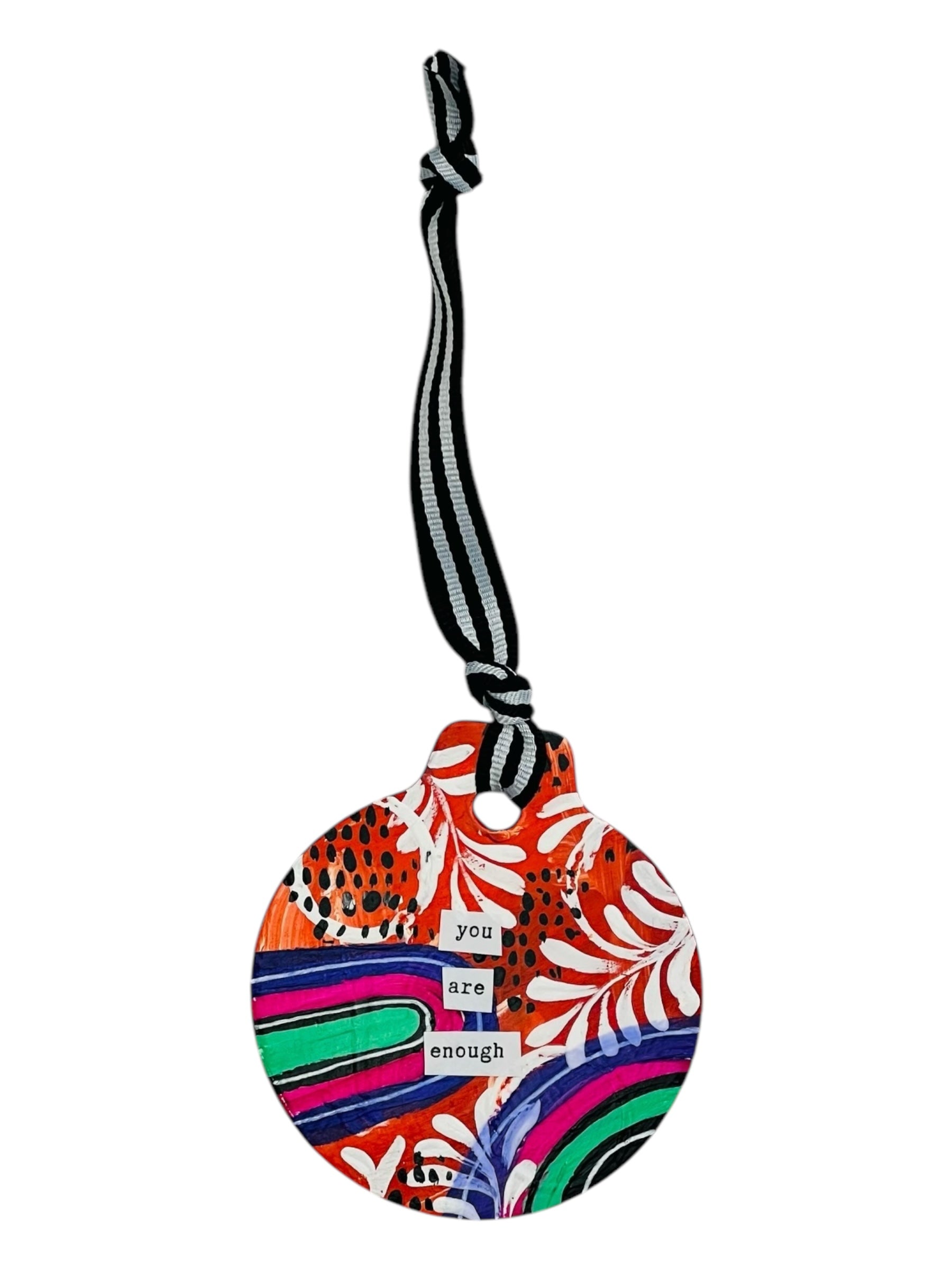 Hand painted one-of-a-kind wood ornament with a little uplifting message. Perfect for year round decoration!