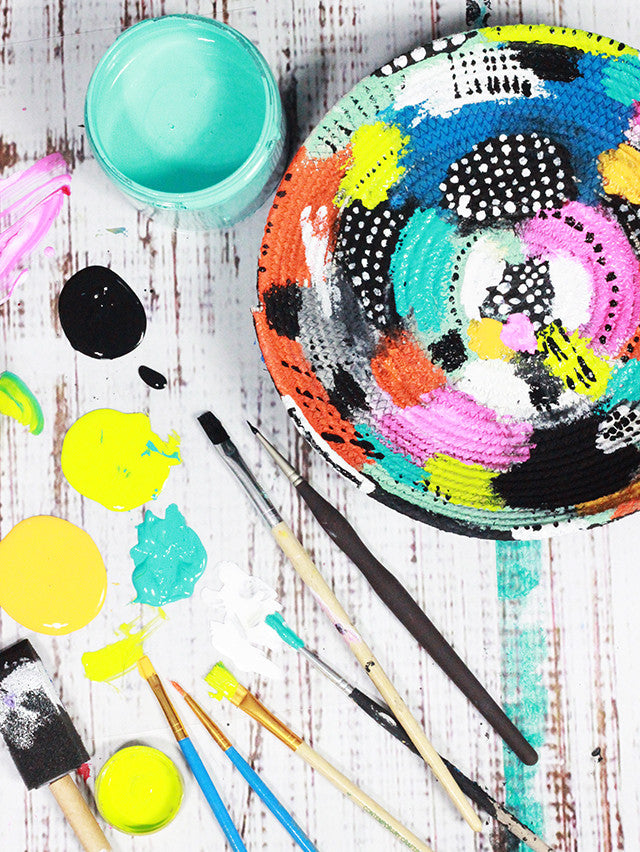 Handmade rope baskets are so much fun to make but I am taking the process a step further and using mixed media techniques to create one of a kind bowls. In this class I will be sharing how to create rope vessels (with and without a sewing machine). Then we will use all kinds of simple supplies, to transform them into colorful, embellished and unique bowls.